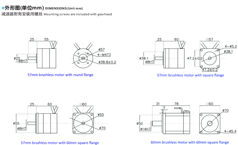 | 电机型号 | 电压 Β | 功率 W | 额定转速 περιστροφή/λεπτό | 额定电流 Α | 额定转矩 N.m | 空载转速 περιστροφή/λεπτό | 空载电流 Α | 最大转矩 N.m |