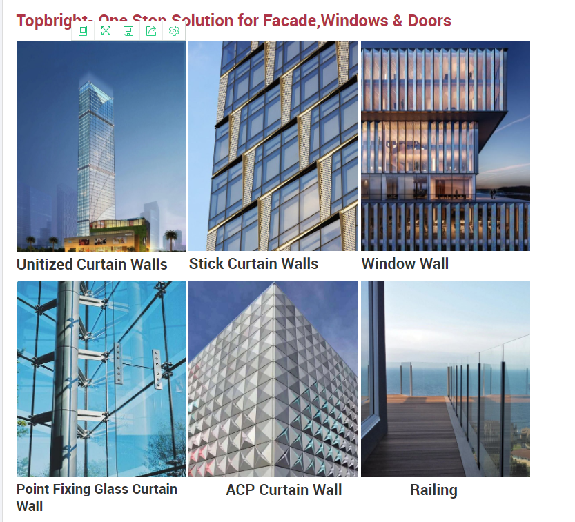 | Τύποι | Τοίχος κουρτινών Unitized, τοίχος κουρτινών ραβδιών, curtian τοίχος αραχνών |