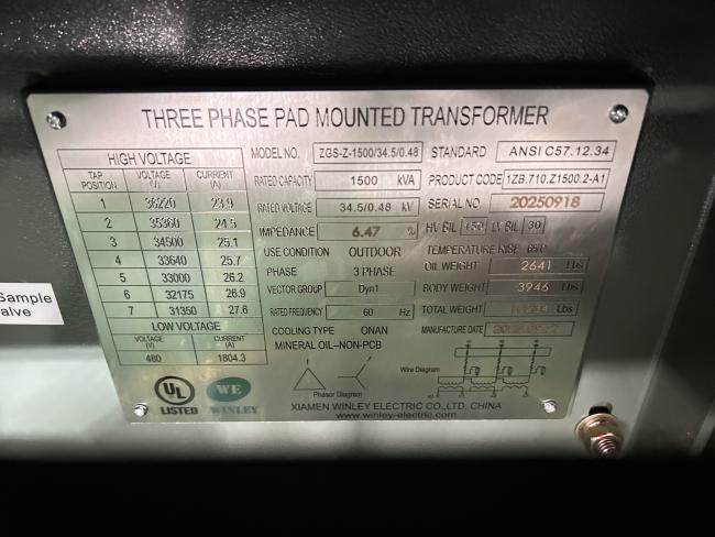 | Πρωτογενή τάση | 34500V | Δευτερεύουσα τάση | 480Y/277 |